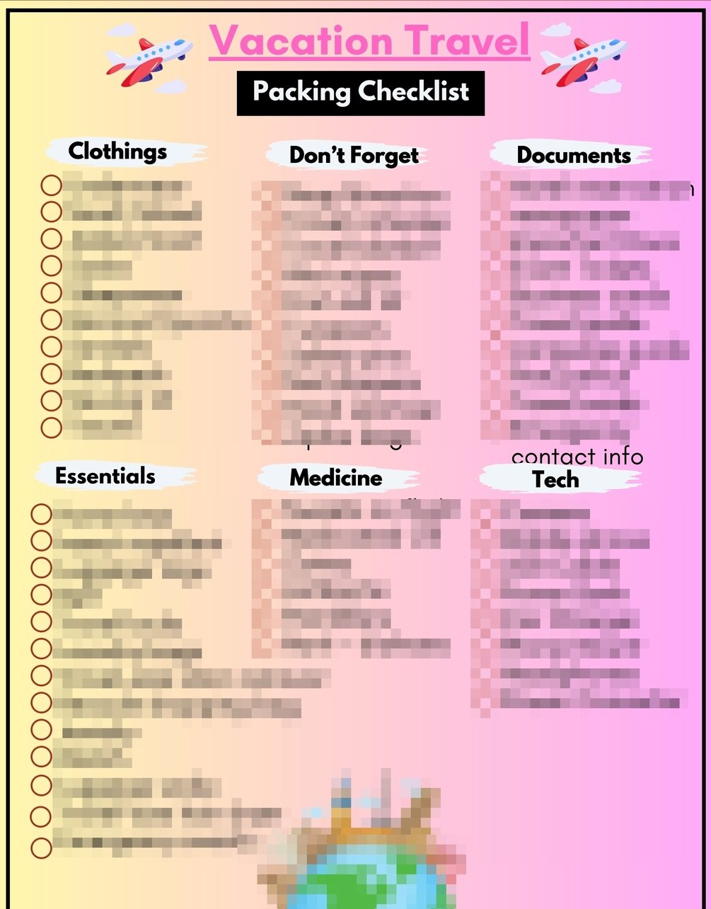 Purchase now and turn packing into a breeze, ensuring your vacation is off to the perfect start!Don't let disorganization spoil your travel experience. Get your packing list today and journey with confidence! 🌟